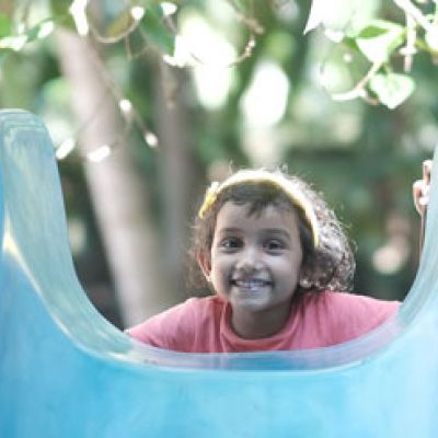 Am liebsten ist sie draußen im Garten, zusammen mit ihren besten Freundinnen Upala und Hiruni. Lachen, klettern, rennen – das ist ihr Ding.