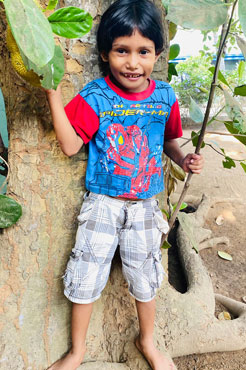 Nethu ist ein 6-jähriges Mädchen, das ganz still und zurückhaltend ins Angels Home kam. Zuerst konnte sie nicht sprechen und war sehr inaktiv. Aber schon nach einem Monat im Kindergarten hat sich Nethu total gewandelt. Sie wurde schnell zum kleinen Star, sowohl im Kindergarten als auch zu Hause, und hat sich die Herzen des Personals und der anderen Kinder erobert.