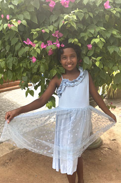 Die 8-jährige Sehansa lebt erst seit gut einem Jahr mit ihren beiden älteren Schwestern Maheshika und Sandali im Angels Home. Sehansa hat sich sehr schnell eingelebt und fühlt sich wohl bei uns, was bestimmt auch durch ihre beiden Schwestern begünstigt wurde. Vor allem ihre älteste Schwester Maheshika kümmert sich sehr liebevoll um die Kleine.