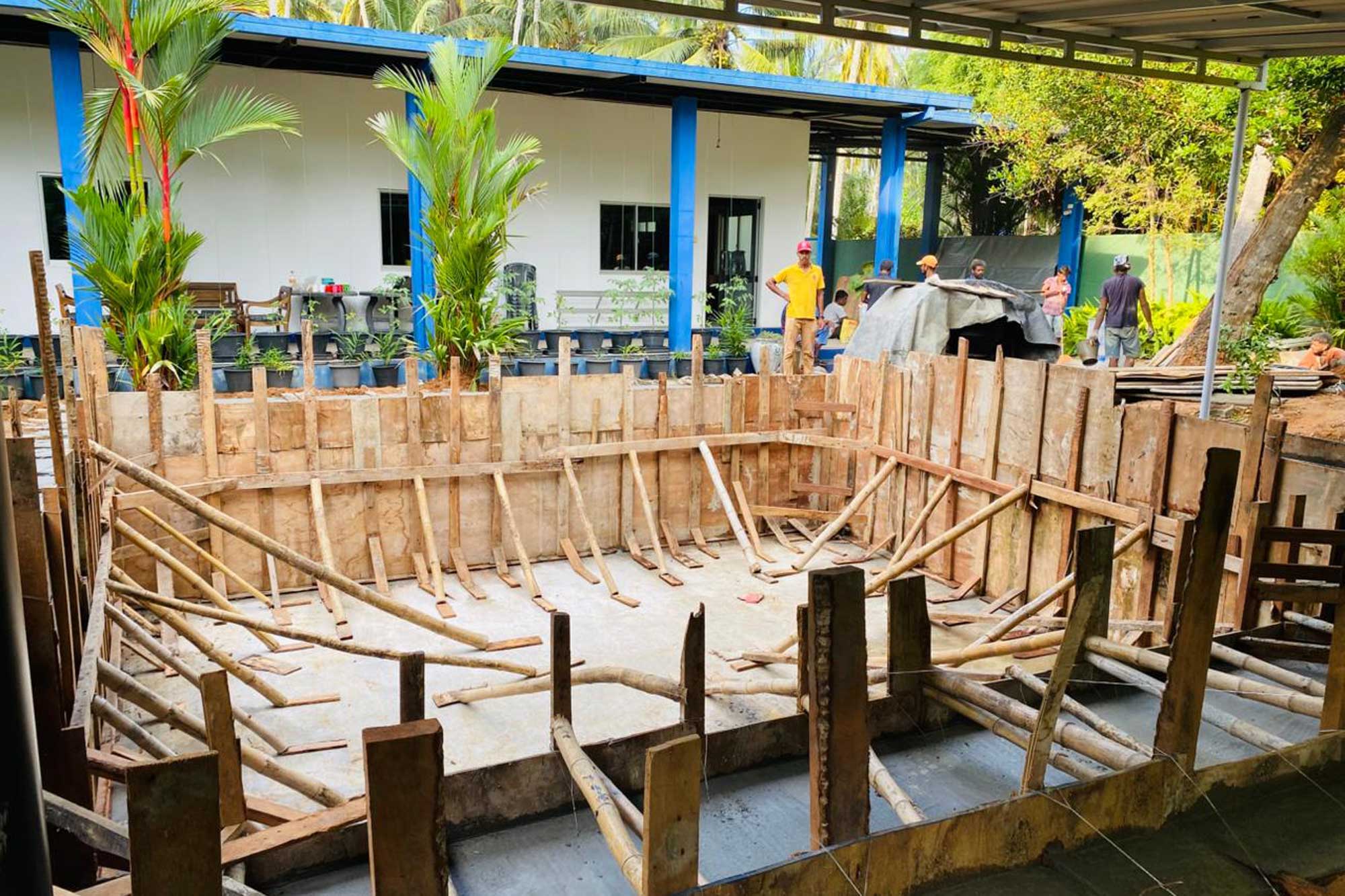Die Beckenform steht, die Wände sind fertig aufgebaut und aktuell laufen die Arbeiten an den Innenflächen.