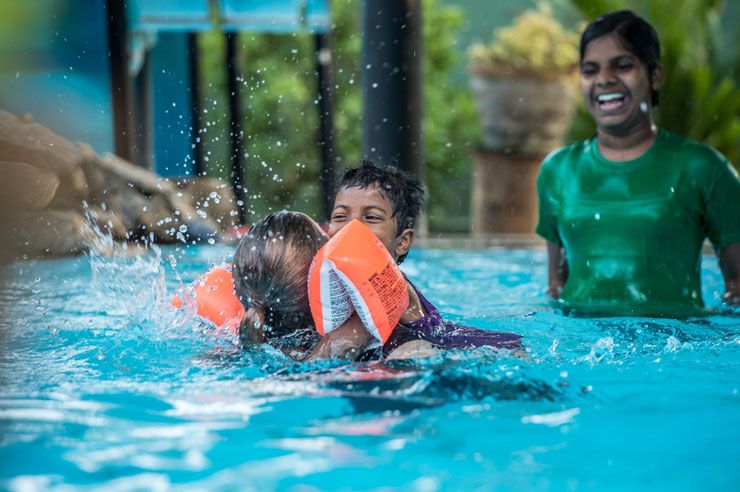 Unser neuer Pool wird ein sicherer Ort zum Schwimmenlernen, Trainieren und Spielen.
