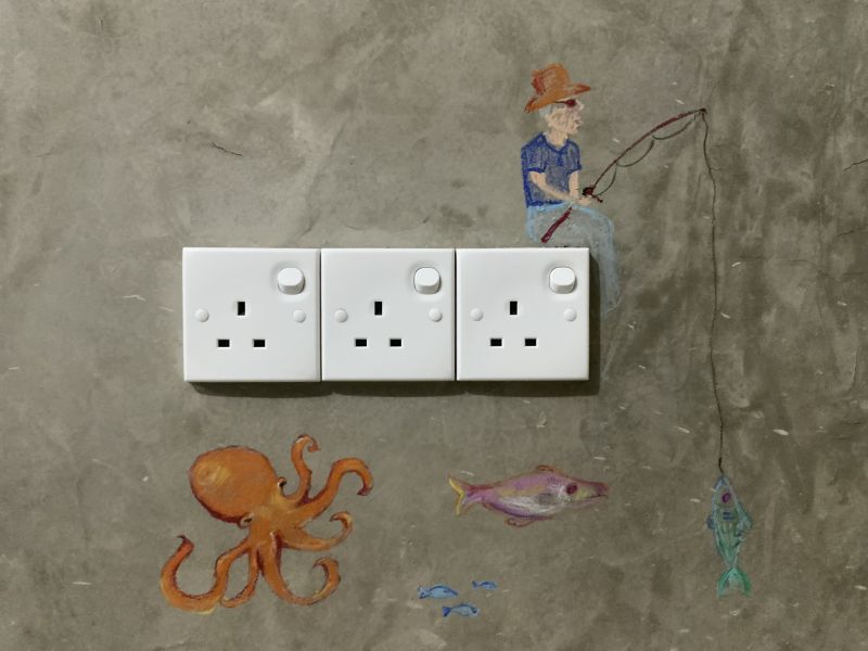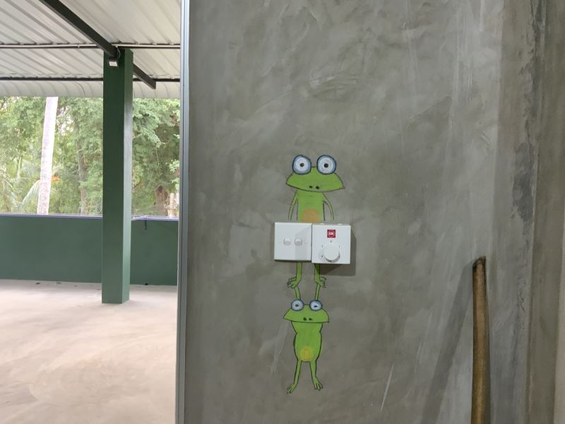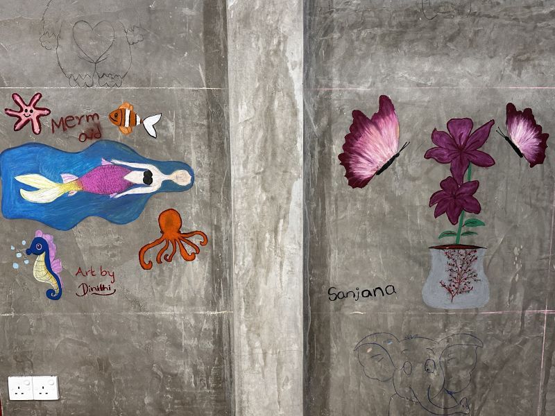 Die Mädchen haben gerade Ferien und ihr TV Raum sieht im Moment noch etwas grau aus. Es braucht ein wenig Farbe. Jedes Kind bekommt ein eigenes Quadrat an der Wand und darf sich dort kreativ austoben.