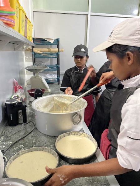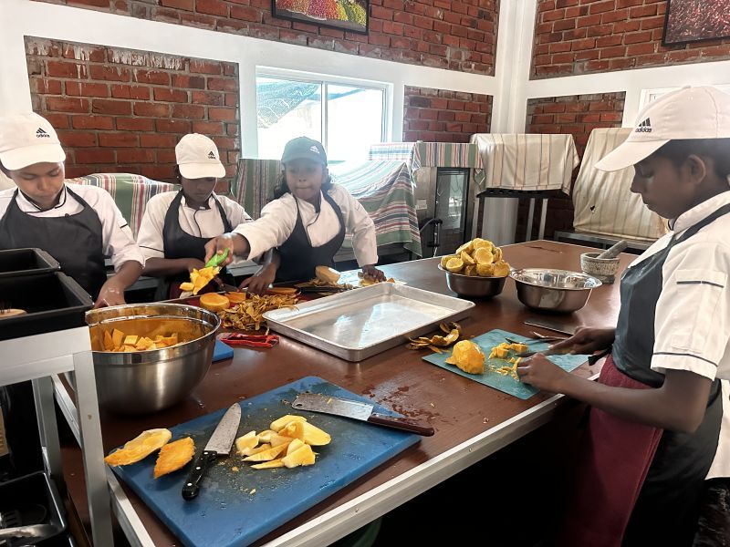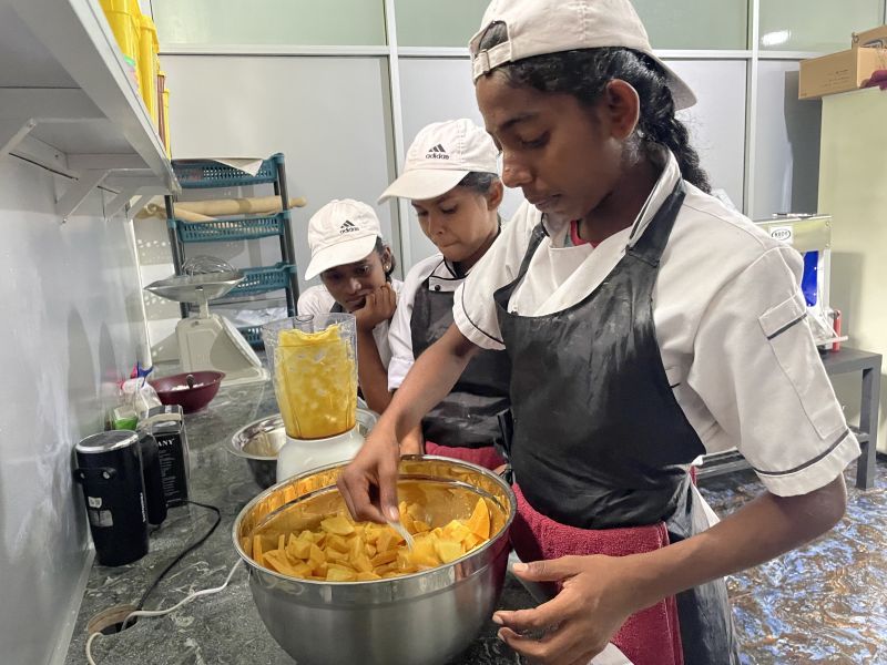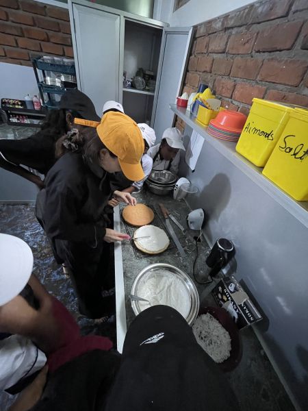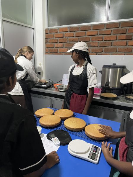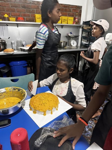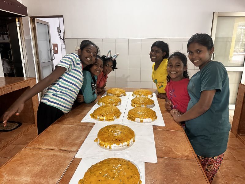 wir haben mit acht Kindern gleich acht Passionsfrucht-Mango-Kokosnuss-Torten gebacken.