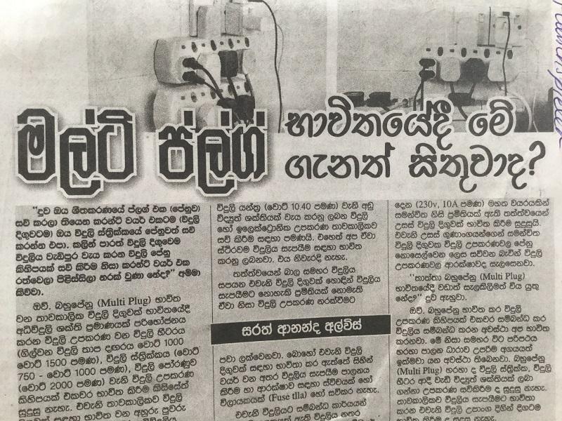 Lustig ist diese Stromgeschichte jedoch nur bedingt. Letztens, als ich in den singhalesischen Zeitungen blätterte fiel mir ein Bild zu diesem Thema in die Augen. (Ich mache es wie früher und gucke mir nur die Bilder an, da meine singhalesisch Kenntnisse auf die Zahlen von 1 - 10 beschränkt sind.) Teekshanie fasst mir den Zeitungsbericht zusammen. Darin wird über die Multiple Plugs berichtet, die mir hier in Sri Lanka schon öfters aufgefallen sind. Mehrere Geräte, wie zum Beispiel Kühlschrank, Computer und Lampen beziehen alle den Strom aus ein und der selben Steckdose. Diese sind natürlich total überstrapaziert und das Ganze kann dann auch einfach mal in Flammen aufgehen. Verstärkt wird die Gefahr durch die Gewitter, die hier im Moment täglich aufziehen. In diesem Falle sollten jeweils alle Geräte ausgesteckt werden...