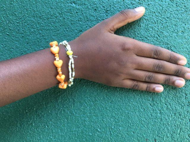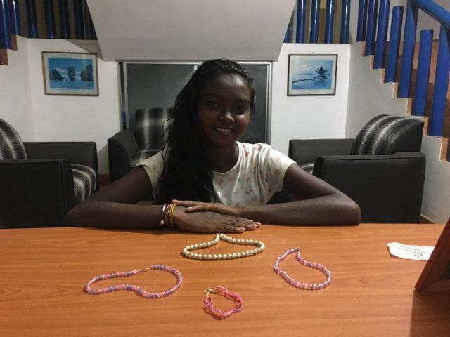 Nach einer Stunde präsentieren die Mädchen stolz ihre Ergebnisse und wollen gar nicht mehr aufhören. Viele fertigen Freundschaftsketten als Geschenke für die kleineren Mädchen und für uns Praktikantinnen an. Die Freude bei der „Bescherung" ist groß und ich bin dankbar ein so schönes Andenken an diesen Moment zu haben.