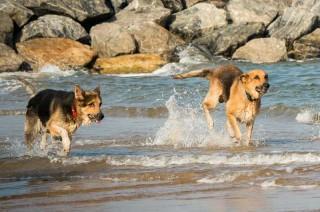 Mindestens dreimal pro Woche starte ich meinen Tag mit einem kurzen Strandausflug, wobei ich von unseren treuen Vierbeinern Clyde und Jerry begleitet werde. Die Beiden lieben dieses morgendliche Abenteuer und drehen schon völlig durch, wenn ich nach dem Aufstehen mit meinen Strandklamotten zur Tür herauskomme. Wehe, ich brauche dann noch einen Moment, um mir z.B. eine Hand voll Wasser ins Gesicht zu schmeißen oder etwas zu trinken. Da kann Clyde auf seine alten Tage ganz schön ungeduldig werden und dies mit lautem und wehleidigen Gejaule zum Ausdruck bringen: "Nun komm doch endlich, wir wollen los!" Spätestens wenn ich mich Richtung Treppe bewege, sind die Beiden nicht mehr zu halten. In einem Affenzahn schießen sie die Stufen hinunter - ohne Rücksicht auf Verluste - und direkt auf die Hundeleinen zu, von denen sie ganz genau wissen, wo sie hängen. Manchmal mache ich mir dann einen Spaß und tue so, als ob ich es mir doch anders überlegt hab, aber damit muss ich dann auch ganz schnell wieder aufhören, damit Frank von dem Gemecker nicht wach wird... ;-)