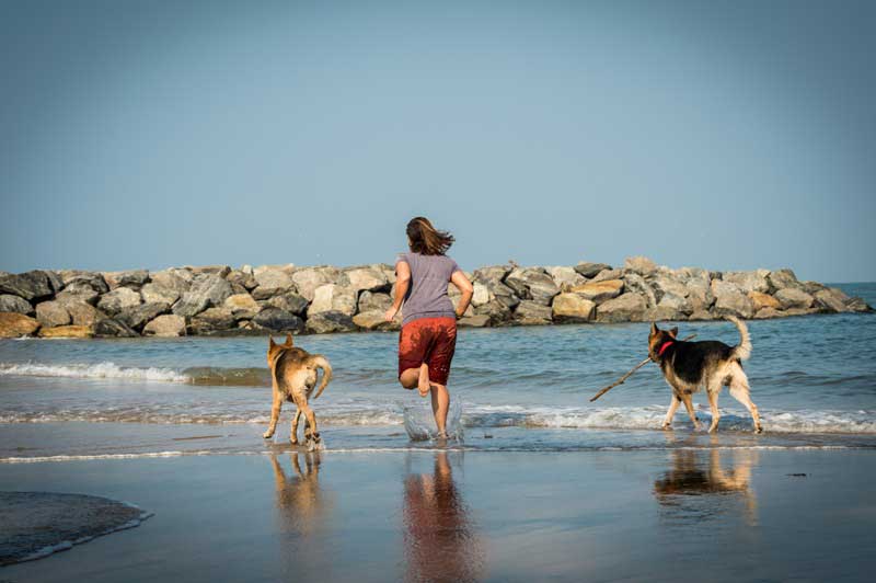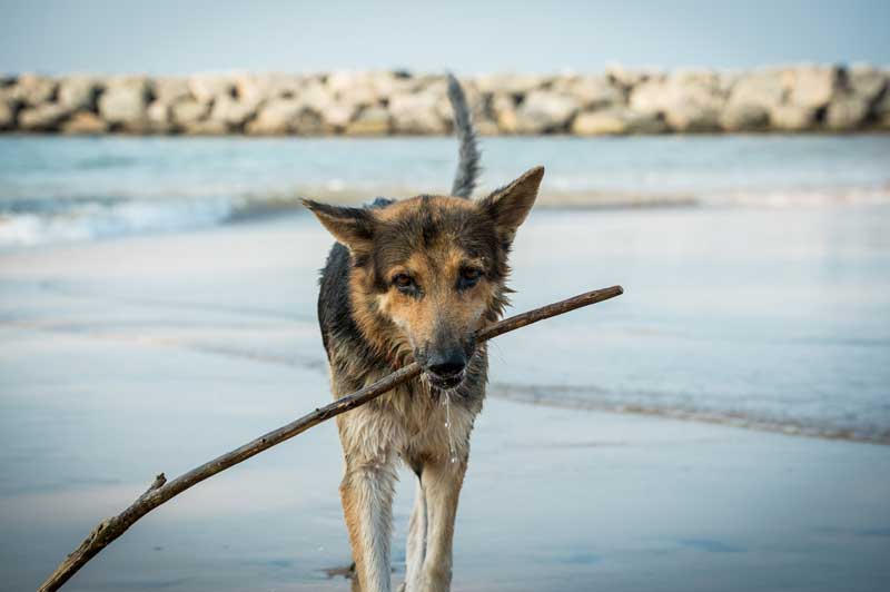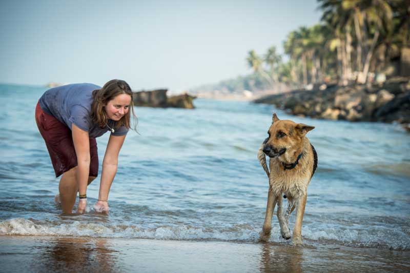 Wenn wir dann endlich auf der Straße und kurze Zeit später am Strand sind, wo ich Clyde und Jerry von der Leine machen kann, ist für sie die Welt in Ordnung. Während Jerry jede noch so unscheinbare Plastikflasche findet und von ihrem Deckel befreit, kümmert sich Clyde lieber um Stöcke und Kokosnussschalen, die er mit Vorliebe aus der Wellen holt und zu mir zurückbringt. Vor allem mit ihm sind diese Strandausflüge eine wahre Freude, denn hier wird er mit seinen 9 Hundejahren nochmal zum jungen Welpen, der sich voller Energie in die Wellen stürzt und trotz trüber Augen seinen Stock so lange sucht, bis er ihn mir voller Stolz bringen kann. Während Clyde also mit Suchen beschäftigt ist, gehe ich mit Jerry auf Flaschenjagd und versuche den fast 5-jährigen Wasser-Feigling etwas nass zu spritzen. Nach ca. 45 min zeigen sich bei Clyde dann die ersten Müdigkeitserscheinungen und wir machen uns auf den Heimweg. Dort angekommen, wird noch das Salzwasser aus dem Fell gewaschen und damit keiner krank wird, kommt sogar noch ein Hundehandtuch zum Einsatz. Nach einem wohl verdienten Leckerli können beide schon kaum noch die Augen offen halten und gleiten ins erste Nickerchen des Tages über... Ach ja, Hund müsste man sein... :-)