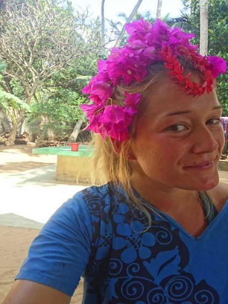 Kaum eröffneten wir die Competition (Wettbewerb), schon rannten die ersten Mädels im Garten umher in Richtung Büsche und Sträucher, um sich ihre Haar-Accessoires auszusuchen. Die Kreativität fand hierbei keine Grenzen. Von einer herrschaftlichen Blätter-Krone für unsere kleine Aruni, über süße Blumenkränze bis hin zu zierlich-dezenten Blüteneinflechtungen war alles dabei. Die Natur stellte uns den schönsten Haarschmuck bereit.