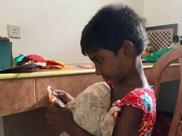 Sorgfältig verstaut sie ihre Schätze in ihrem Schrank und ein wenig später sieht man Aruni mit ihren Freundinnen die ersten Gummibärchen naschen.Als Aruni vor wenigen Wochen im Angles Home angekommen ist, war sie sehr verhalten und hat kaum gesprochen. Mit der Zeit wird sie immer zutraulicher, spricht nun schon die ersten Worte und hat Freundinnen gefunden. Dies ist für alle eine erfreuliche Entwicklung.