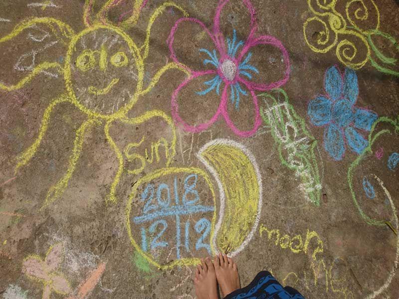 6 Packungen Kreide, 40 begeisterte, ungeduldige Angels und eine große, asphaltierte, leere Fläche vor dem „Angels Home – Tor", die unbedingt verschönert werden möchte.