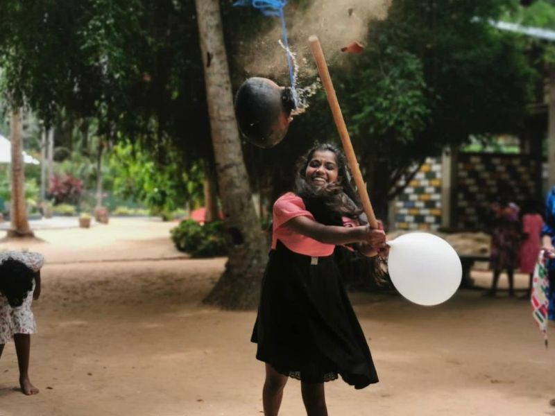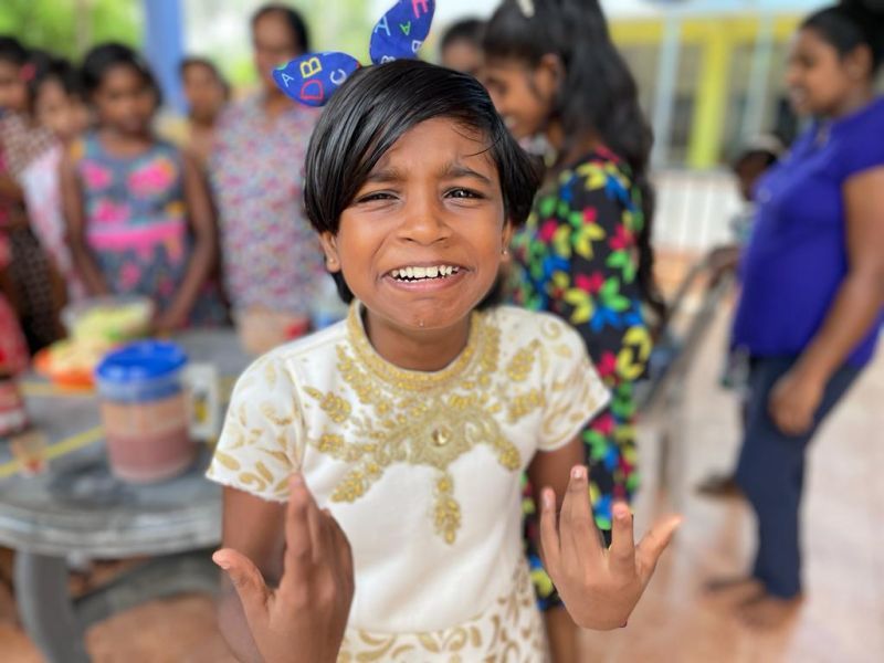 Um den Tag gebührend abzuschließen, hält Kindermädchen Hiruni eine kleine Rede, für die sie sich sogar Karteikarten geschrieben hat. Herzlich bedankt sie sich zunächst einmal bei Frank, der diesen Tag möglich gemacht hat (dieser war zu dem Zeitpunkt nicht anwesend, dazu gleich mehr). Auch bedankt sie sich bei uns, dem Personal, sowie den Kindern, die so gut mitgemacht haben. Ein erfolgreicher Tag!