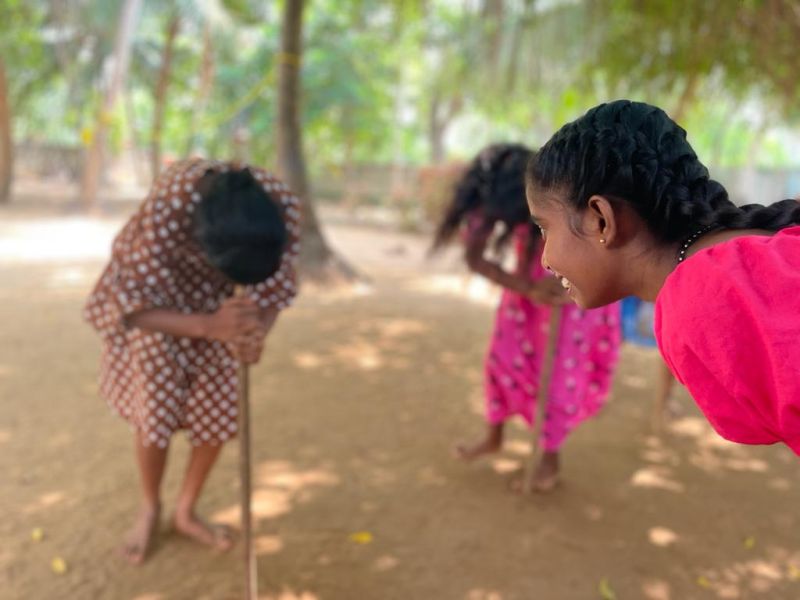 Das nächste Spiel auf dem reichlich gefüllten Tagesplan ist Stockdrehen.