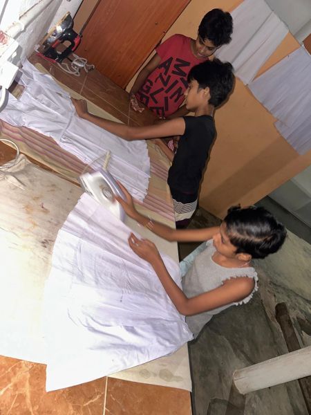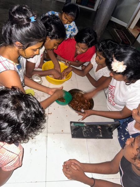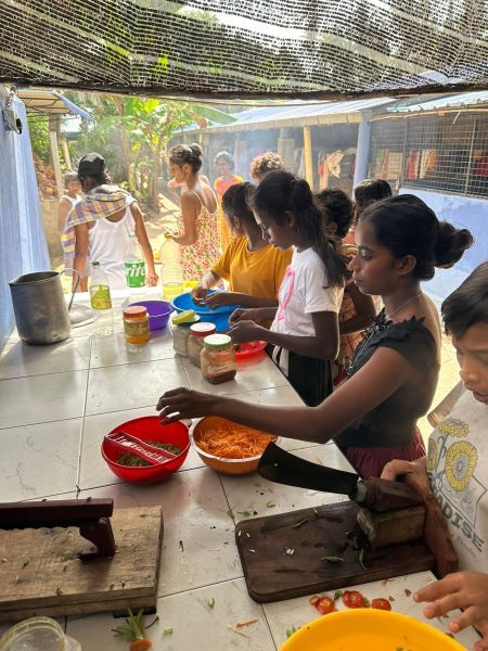 So kam Linus auf die Idee, dass die Kinder erfahren sollten, wie es ist, ohne die Unterstützung der Mitarbeiter zurechtzukommen. Er sagte: „Ich habe das schon einmal gemacht. Die Mädchen wissen genau, was sie zu tun haben. Und wenn etwas ist, können sie mich jederzeit anrufen. Du bist wirklich nur zur Beobachtung da." Ich: „Ok, das kriege ich hin." In meinem Kopf ging ich alle Aufgaben durch, die nun auf die Mädchen zukommen würden. Für mich war klar, dass das Kochen die größte Herausforderung darstellen würde – zumindest für mich wäre es das, für 56 Kinder zu kochen. Und das sollten jetzt 5- bis 19-Jährige übernehmen. Linus sagte voller Vertrauen: „Das schaffen die." Einige Mädchen kamen mit 5 Jahren ins Angels Home und behaupteten, sie wüssten genau, wie es in der Küche abläuft, weil sie zu Hause schon mitgeholfen hatten. „In anderen Heimen in Sri Lanka ist es normal, dass die Kinder ihr Essen selbst kochen müssen."