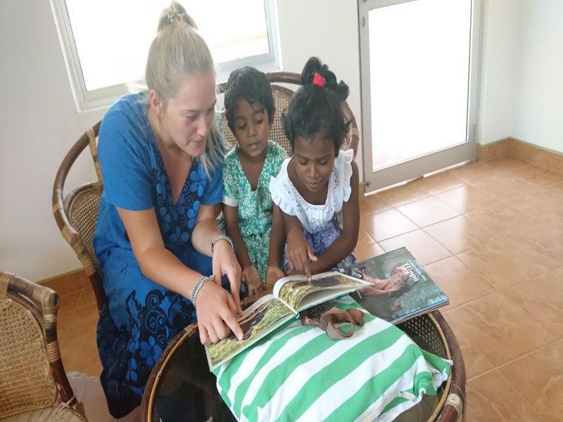 „Yeeaah, English!" ertönt es seit einigen Wochen nun fast täglich um 11 Uhr am Vormittag von unserer kleinen Maheshi, von Gayani, oder von Sandali. Denn seitdem haben wir auch Englisch-stunden für die ganz Kleinen eingeführt - für die, die noch nicht zur Schule gehen. In der Zeit, in der also die größeren Mädels die Schule besuchen, sollen auch die Kleinsten nicht zu kurz kommen und werden somit nun auch unterrichtet. Dieser Vorschulunterricht verbindet spaßige Unterhaltung mit dem Lernen von Begriffen, die hier im Alltag allgegenwärtig sind.