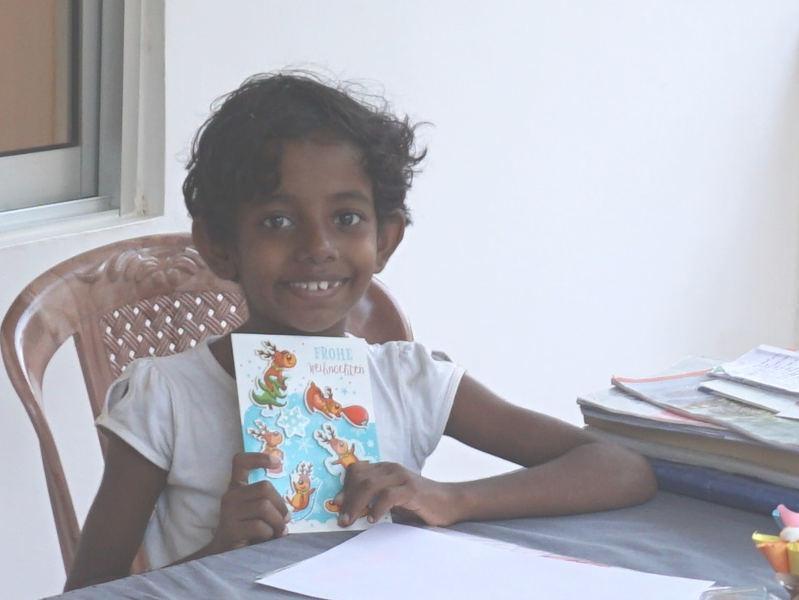 Wenn es in Deutschland kalt wird und wir uns jedes Jahr aufs Neue Mütze und Schal anziehen und uns in unsere dickste Jacke packen, sind viele am Jammern. Für die Kinder hier unvorstellbar. Wenn sie morgens bei angenehmen Temperaturen, die nie unter 20 Grad gehen, schon frieren, muss ich schmunzeln. In der Weihnachtszeit und auch noch jetzt beschäftigt viele Kinder im Angels Home das Thema Schnee, da viele Pateneltern in ihren Briefen berichteten, dass es in Deutschland gerade sehr kalt ist. Besonders einprägend war für mich, als ich mit Thilini den Brief ihrer Pateneltern öffnete und sie diesen für lange Zeit bestaunte. Sie war so fasziniert von dem Schneemann, den Sternen und dem Tannenbaum, die in die Karte gemalt waren, dass sie sofort versuchte, diese nachzumalen. Ich hätte es nicht für möglich gehalten, hier nochmals in Weihnachtsstimmung zu kommen, doch Thillinis Begeisterung steckte mich an. Sie sang fröhlich Merry Christmas und war total aufgedreht. Auch noch jetzt, einige Tage nach Weihnachten, sprechen die Mädchen immer wieder von Schnee, malen Schneemänner und wollen wissen wie das Wetter bei uns gerade ist.