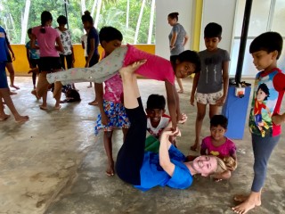 Dieses Wochenende wurde auf Sri Lanka eine Ausgangssperre wegen Corona verhängt (Julia hat ja auch schon davon berichtet). Aber wenn man hier im Angels Home lebt, ist das eigentlich gar nicht so schlimm! Denn langweilig wird einem hier echt nicht!! Heute Vormittag hat Julia eine Sportstunde gegeben, und ich musste natürlich auch mitmachen - trotz den 3 Rotis, die ich kurz davor zum Frühstück gegessen hatte. Aber ich habe es nicht bereut! Es hat nämlich sehr viel Spaß gemacht, vor allem weil wir am Schluss auch noch Brücke, Kopsfstand, Flieger, Radschlag und so weiter geübt haben. Davor gab es schon ein Workout zu Bauch, Beine und Po und ich habe eine passende Sportmusik dazu laufen lassen. Sogar die Heimmütter haben es sich nicht nehmen lassen mitzumachen und mit rumzualbern. Und die Engel haben dauern „Nena look!" gerufen, um zu zeigen, was sie alles können. Es ist sehr schön zu sehen, wie viel Ehrgeiz und Spaß die Mädels dabei haben!