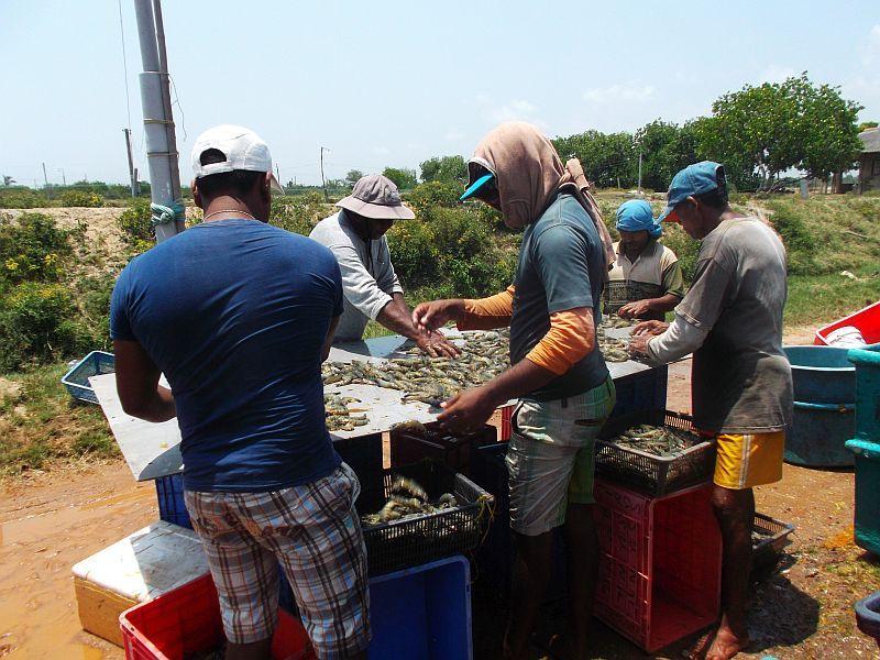 Großes Glück hatte ich an meinem freien Tag, den ich in Chilaw verbrachte: Nicht nur, dass ich einen Tuk-Tuk-Fahrer erwischte, der sehr gutes Englisch sprach (ich hatte auch schon das Vergnügen einer Tuk-Tuk-Fahrt mit Unterhaltung auf Italienisch :) ), sondern auch die Tatsache, dass mein Besuch einer dort ansässigen Garnelen-Farm genau auf den Tag fiel, an dem die Tiere gefischt wurden – dieses Spektakel passiert nämlich nur alle drei Monate!