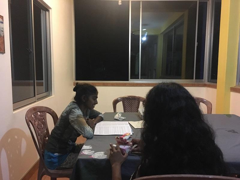 Englisch, Singhalesisch, Mathe, Naturwissenschaften, Kunst, Geschichte, Religion. Dann wird noch gewählt zwischen Informatik, "health science" und Kochen, die Jüngeren haben stattdessen Tamilisch. Die Mädchen müssen mündlich und schriftlich in jedem Fach antreten. Die maximale Punkteanzahl beträgt 100 und ab 40 hat man bestanden, meistens liegt der Bestwert zwischen 80 und 90 Punkten.