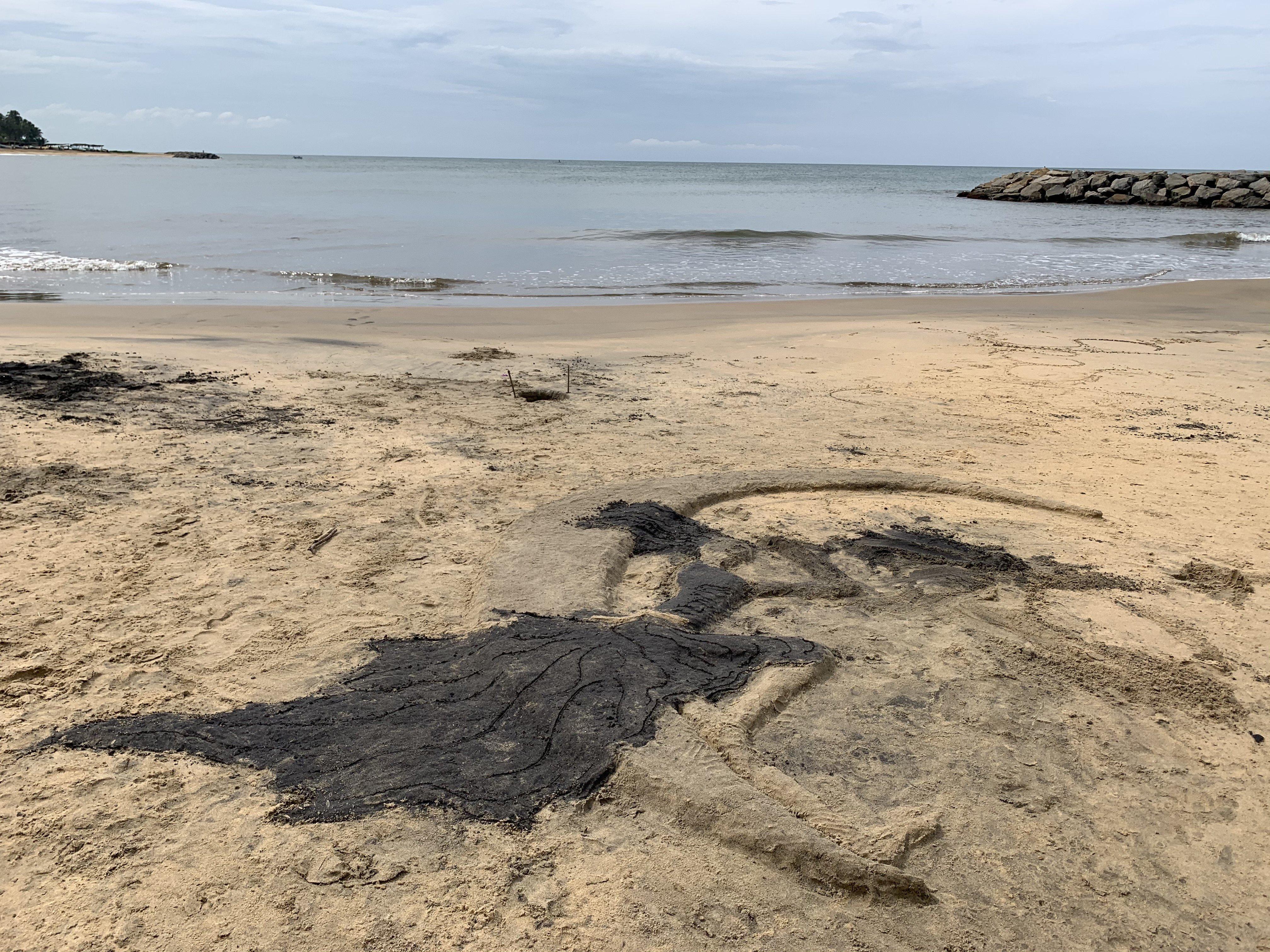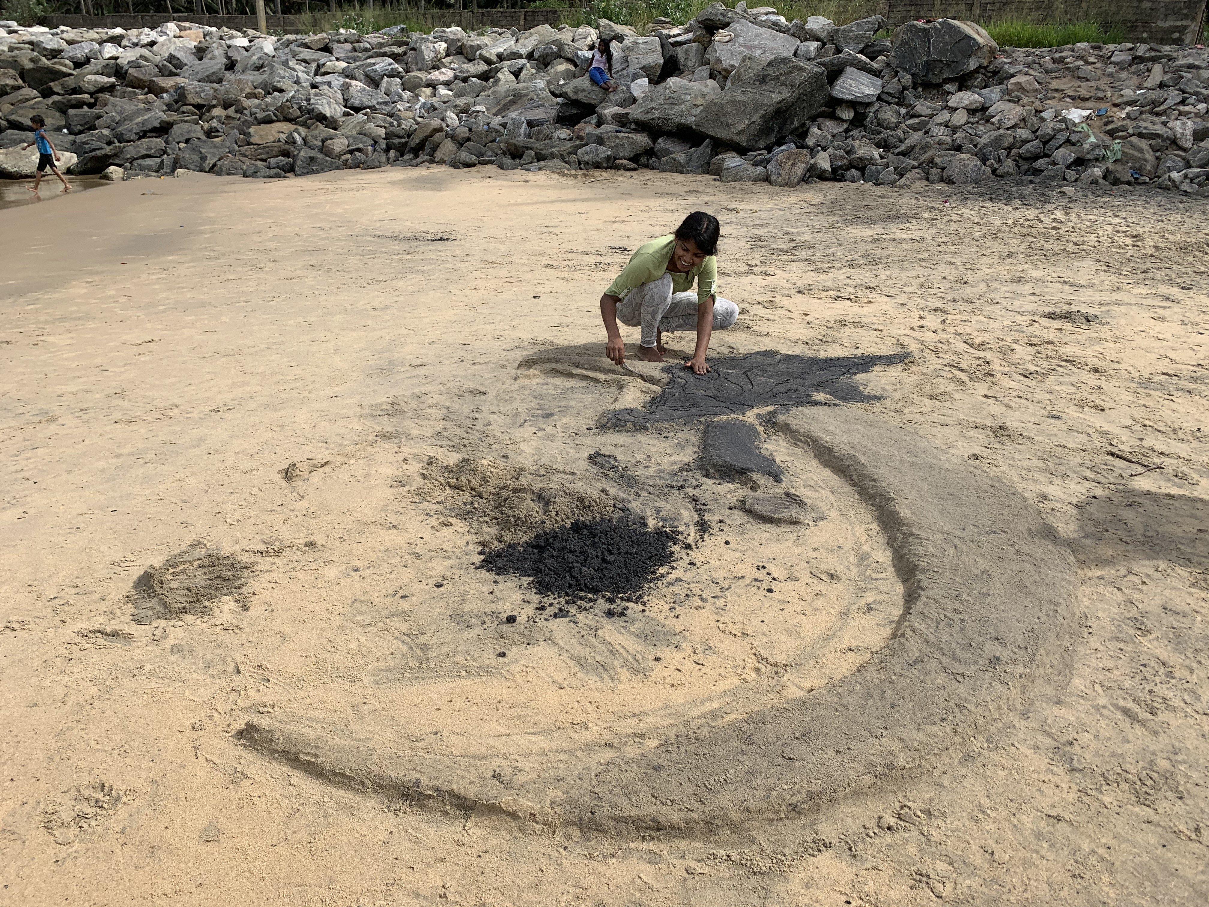 Als alle im Wasser spielten und die Zeit für einen Moment vergaßen, hat unsere talentierte Sodi wieder ein Kunstwerk aus Sand gezaubert – eine Frau im Kleid, die auf dem Mond sitzt – großartig!
