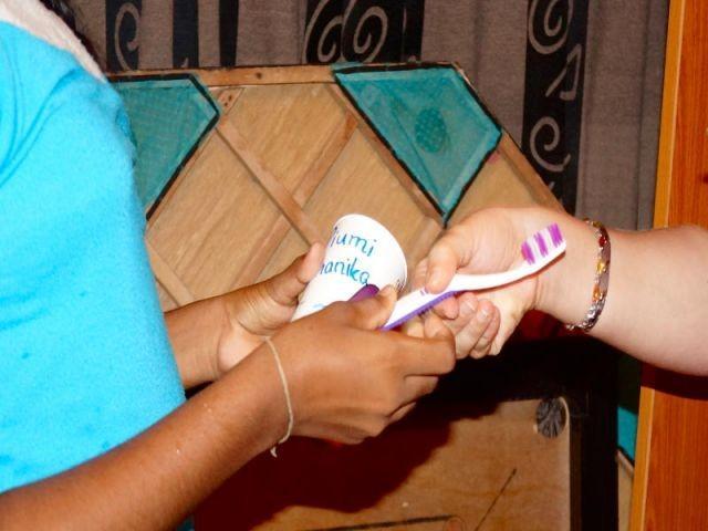 Heute ist es mal wieder so weit: die 50 Mädchen des Angels Home bekommen neue Zahnbürsten ausgeteilt. Wir Praktikantinnen kennen die Zahnbürsten der Mädchen fast so gut wie die Mädchen selbst und wissen daher auch um den Umgang mit den Zahnbürsten bestens Bescheid. Der jeweilige Stellenwert und die Behandlung der Zahnbürste variiert doch von Nutzerin zu Nutzerin sehr stark aber trotzdem ist für alle der Mädchen der große Zahnbürstencheck und -tausch eine aufregende Aktion.