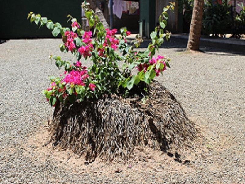 Im Angels Home wird vieles zweckendfremdet und sinnvoll weiterverwendet. Um das herauszufinden muss man nur einen kurzen Blick in den Garten werfen, wo die Bäume und Beete anstatt von teuren Steinen oder Zäunen von alten Kokosnussschalen eingebettet werden.