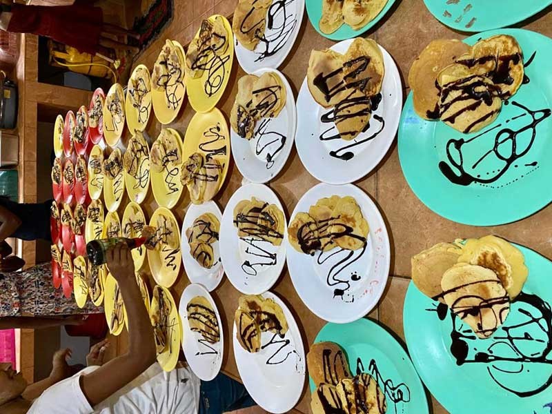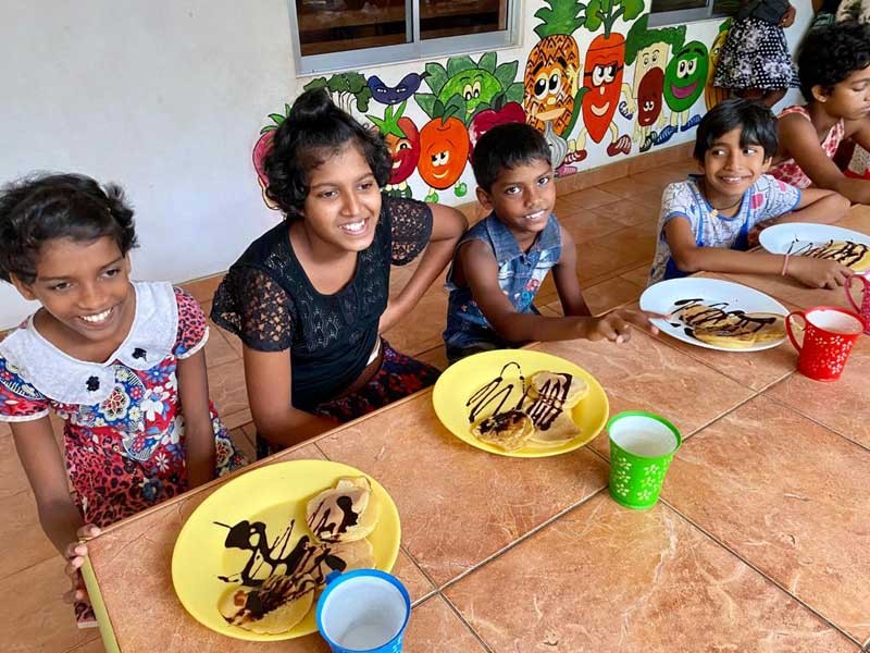 Insgesamt hatten wir über 150 Pancakes, und alle haben 3 - sogar die ganz Kleinen - gegessen! Das Highlight war aber tatsächlich die Schokoladensauce und gar nicht die Pancakes selber, das hat man am Abschlecken der ganzen Teller gesehen.