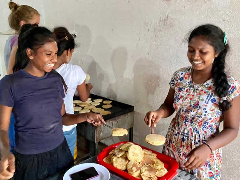 Am Samstag Nachmittag haben Rika und ich mit den älteren Mädels Pancakes für alle Mädchen gebacken. Wir haben dabei sogar Musik gehört, getanzt und hatten sehr viel Spaß dabei! Eine kleine Mehlschlacht gab es auch noch. Zum Glück haben wir keinen Ärger mit der Heimmutter bekommen, denn die Spuren haben wir selbstverständlich wieder beseitigt! Es war ziemlich ungewohnt für mich, mit fast 4 Kilogramm Mehl zu backen - und das auch noch ohne Handmixer! Das Backen hat aber tatsächlich viel länger gedauert als erwartet. Wir wollten eigentlich pünktlich zur Teezeit um 16 Uhr fertig sein. Letztendlich war es schon 17 Uhr, somit war es eigentlich schon ein vorgezogenes Abendessen.