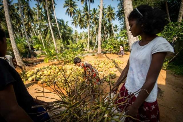 Sei es als Öl für die Haarpflege, zum frittieren oder braten, Kokosraspeln in 100 verschiedenen Speisen, allen voran das Kokossambal, das aus Chilli, Gewürzen und viel frisch geraspelter Kokosnuss besteht, sowie der allgegenwärtigen Kokosmilch in praktisch jedem Curry ist die große Nuss auch in der Küche und im Badezimmer allgegenwärtig. Aber auch als Besen, Seile und Schnüre, Fußmatten, Stützen im Hausbau und Düngermaterial, jeder Teil der Kokospalme findet seine Verwendung.