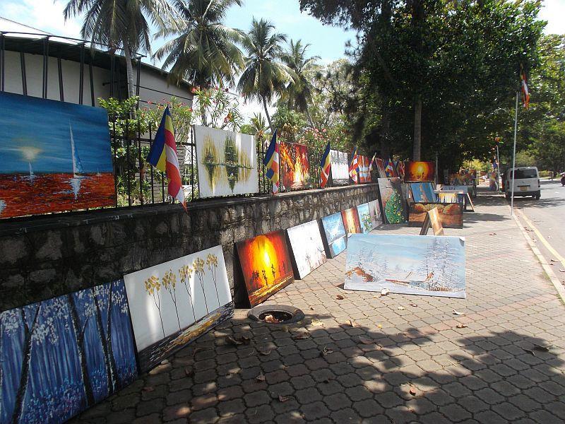 An einer Seite des Parks fand ich dann das Highlight meines Tages: Die Straßenkünstler von Colombo! Sie stellen dort im Wechsel mit Kunststudenten ihre Werke zum Verkauf aus. Satte Farben und viele srilankische Motive soweit das Auge reicht. Wie gerne hätte ich mir und meiner Familie davon ein Bild als Andenken gekauft! Nur leider arbeiten die Künstler mit großen Keilrahmen, die für meine 2,5-wöchige Rucksack-Reise, die ich nach meinem Praktikum noch unternehmen werde, einfach total unpraktisch sind. Schade, schade, schade!
