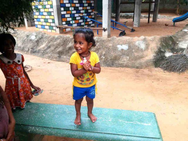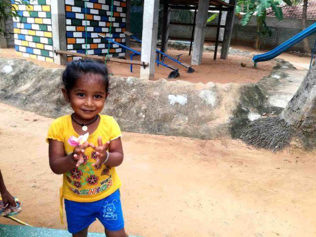 Dima ist die kleine Tochter unserer Hilfsköchin Dipani und begleitet sie brav zur Arbeit. Während Mama (amma) uns also das köstliche Essen kocht tobt Dima mit den anderen Kindern.