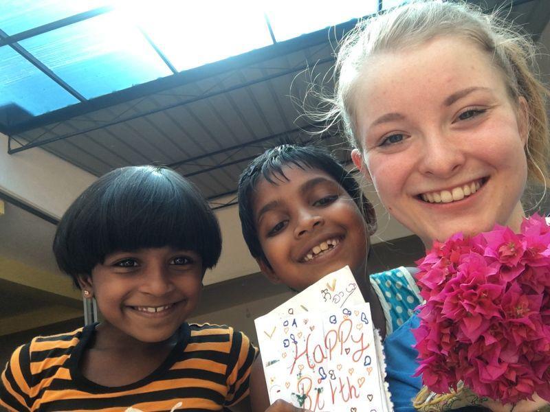 Schon drei Tage nach meiner Ankunft stand mein 19. Geburtstag vor der Tür. Das ers-te Mal auf einem anderen Kontinent und ohne Familie, wie wird das nur werden? Ich war doch erst seit wenigen Tagen hier und die Mädels kannten mich noch gar nicht richtig ... Alle Sorgen waren jedoch schnell verflogen, als ich am Morgen nach unten kam und die ersten 10 Mädchen auf mich zurannten und Happy Birthday gerufen haben. Alle wollten mich umarmen und mir die Hand geben. Sofort wurden die ersten Geburtstagsfotos geschossen, um den Moment festzuhalten. Die größte Überraschung bekam ich allerdings nach dem Mittagessen, als zwei Mädchen ganz aufgeregt zu mir kamen und mir die Hände vor die Augen gehalten haben. Ich sollte ihnen durch den Garten folgen und als ich wieder sehen konnte, standen mindestens 12 Kinder vor mir und haben ganz laut Happy Birthday gesungen. Zusätzlich wurden mir drei Sandtortenmit Blumen verziert „gebacken". Von allen Seiten habe ich selbstgemalte Happy Birthday-Karten bekommen und kleine Geschenke wie Armbänder oder Blumen.