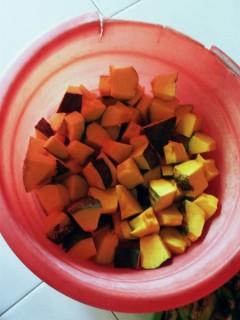 Den Kürbis würfeln und ca. 20 min in Salzwasser kochen bis er weich ist. Anfangs muss der Kürbis im Wasser schwimmen. Nach den 20 min sollte das Wasser nahezu verkocht sein. Währenddessen ist Zeit die Gewürzmischung zuzubereiten. Alle Gewürze in einer Schale vermengen und mit einem Mörser zerkleinern bis die Kokosnussraspeln eine schwarze Färbung annehmen. Anschließend die Mischung zum Kürbis in den Topf geben. Die Kokosmilch darunter mischen und kurz ziehen lassen. Gegebenenfalls nachwürzen. Mit Reis zusammen servieren. Guten Appetit!
