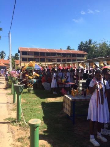 Am Montag fand in der Schule unserer Mädchen, dem Holy Family Convent, ein großes Schulfest statt. Wir Praktikantinnen beschlossen am Vormittag hinzufahren, waren wir doch gespannt, wie sich ein singhalesisches Schulfest von den uns bekannten deutschen unterscheidet. Dort angekommen erwartete uns ein rießiger Markt mit vielen verschiedenen Ständen. Alle samt waren mit selbst gemalten Schildern und Girlanden dekoriert. Angeboten wurden alle nur erdenklichen Leckereien, von Pancakes über gewürzte Mango bis zu Eiscreme. Zu Beginn beäugten uns die Mädchen als einzige hellhäutige Gäste noch recht argwöhnisch, bald aber war die Scheu verflogen und man wollte uns zum Dosenwerfen oder Loseziehen überreden.