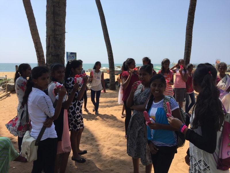 Natürlich stand nun noch der zweite Programmpunkt an und nach dem Mittagessen ging es mit dem Bus wieder zurück in Richtung Marawila. Auf dem Weg stoppten wir am Stand und es gab erst einmal Eiscreme für alle! Zuerst vorsichtig mit den Füssen und später planschend im Meer genossen die Mädels die Nachmittagsstunden. Sie posierten für Fotos, versuchten sich (oder mich 😉) gegenseitig ins Wasser zu ziehen oder lehnten entspannt an den Fischerbooten am Strand und waren in Gespräche vertieft. Ein wunderschöner und erlebnisreicher Tag ging zu Ende und da es nicht mehr weit zum Angels Home war, beschlossen wir und zu Fuß auf den Rückweg zu machen. Die kleineren Kinder erwarteten uns schon und aufgeregt wurde erzählt, was wir alles erlebt und gesehen hatten.