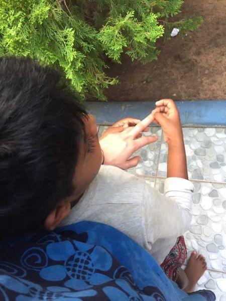 Vishmi ist früh am Morgen noch ganz verschlafen.