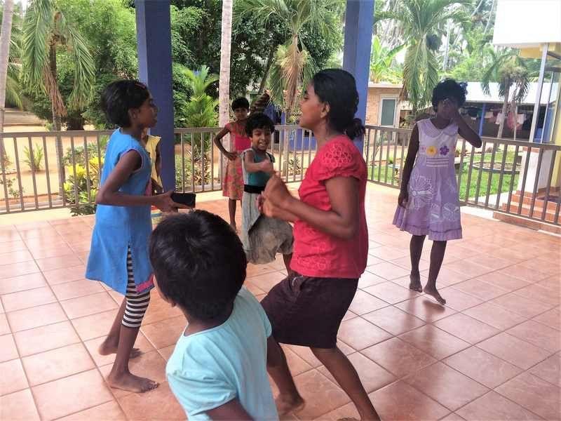 Die Mädchen im Angels Home lieben es, zu tanzen. Wie schon so oft festgestellt, gibt es auch viele Tanztalente unter ihnen. Natürlich hören die Mädchen am liebsten ihre traditionelle Musik aus Sri Lanka. Sie ist voller Rythmus, Klatschen und Gesang in der singhalesischen Sprache. Musik, die in der westlichen Kultur gespielt wird, wird hier eher selten gehört und ist somit eine Ausnahme. Da stellt sich die Frage: Wie würden sich die Mädchen bewegen, wenn mal etwas andere Musik gespielt wird?