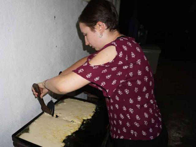 Um 8 Uhr fingen Valentina und ich dann an den Kaiserschmarrn zu backen, was dann auch relativ schnell auf der großen Platte auf der sonst immer die Rotties gemacht werdn funktioniert. Die Kinder haben sich dann schon sehr auf das Essen gefreut, und fanden auch Gefallen an dem fremden Gericht.