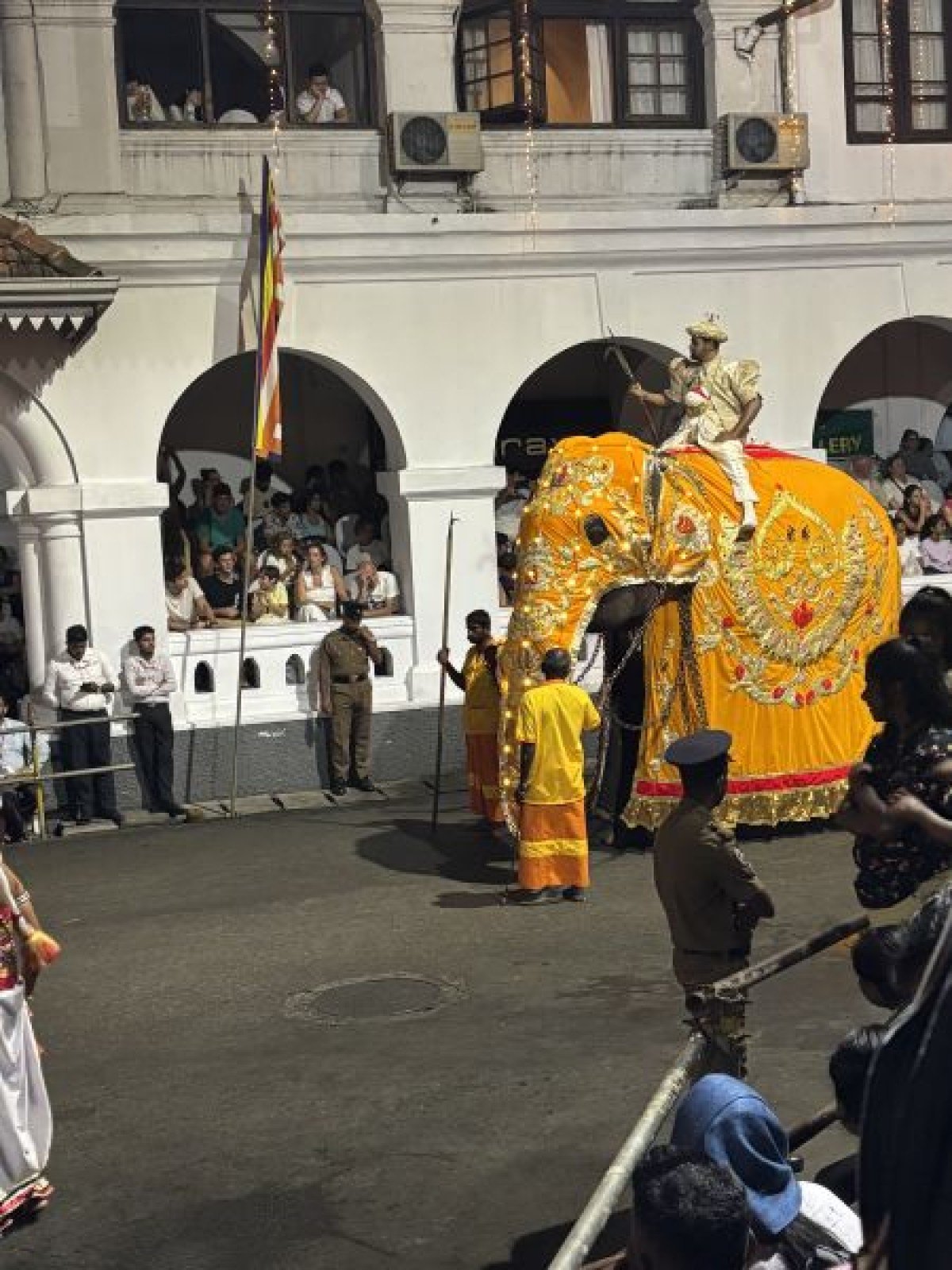 Die Anreise war mühsam und schweißtreibend. Auf den ersten Blick scheint Kandy gar nicht so weit entfernt zu sein. Doch bis ich es schließlich mit dem Bus ins sogenannte kulturelle Dreieck geschafft hatte, lagen viereinhalb Stunden Fahrt und zwei Umstiege hinter mir. Die Meinungen der Einheimischen zur Esala Perahera gehen durchaus auseinander und inzwischen weiß ich auch, warum. In Kandy angekommen, hatte ich wirklich das Gefühl, ganz Sri Lanka sei hier versammelt. Wohin man auch blickte, Menschenmassen, die sich die besten Plätze am Straßenrand sicherten und Singhalesen, so weit das Auge reichte. Als Touristin wurde mir sofort ein sogenannter „Premium-Platz" in bester Lage für stolze 80 Euro angeboten, doch das kam für mich als Studentin natürlich nicht infrage. Ich wollte das Fest so erleben, wie es die Einheimischen tun mitten im Getümmel, ohne VIP-Status, dafür mit echtem Gefühl. Überwältigt von all dem Trubel und der Atmosphäre zog ich mich zunächst in ein kleines Café zurück, um dem Chaos für einen Moment zu entkommen und in Ruhe durchzuatmen.