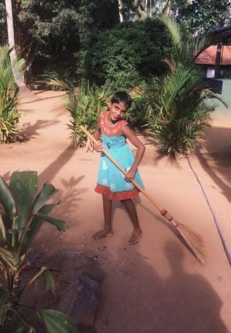 Damit der schöne, große Garten des Angel Homes immer so gepflegt bleibt, heißt es hier jeden Tag von viertel nach 4 bis 5 Uhr, ab zur Gartenarbeit. Die Mädchen Fegen, zupfen Unkraut, gießen die Pflanzen und sammeln die geharkten Haufen ein, um das Laub auf unserem fireplace zu verbrennen. Während die großen Mädchen ihre Aufgaben gewissenhaft und schnell erledigen, verwechseln viele kleinere Mädchen die Gartenarbeit oft mit der Spielzeit. Doch im Endeffekt geht auch bei den Kleinen mit etwas Hilfe eigentlich alles immer recht zügig bis dann auch schon wieder die tatsächliche Spielzeit beginnt.