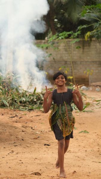 Wenn ich den Mädchen sage, ich bräuchte vier der Kleineren, sind einige tief in ihre Hausaufgaben vertieft, während andere sofort aufspringen. Zuerst finde ich eine Assistentin, die mir kreativ und tatkräftig zur Seite steht. Die Mädchen sind begierig darauf, zu assistieren. Sie übernimmt auch die Rolle der Übersetzerin. Es ist erstaunlich, wie schnell sich eine Gruppe aufgeregter Kinder bereitwillig vor die Kamera drängt, sobald sie merken, dass etwas Spannendes passiert.