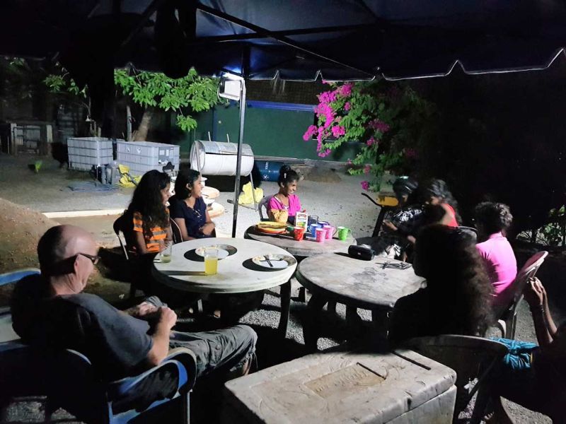 Aus diesem Grund haben wir uns gestern spontan dazu entschieden, die Mädels ein wenig abzulenken und auf andere Gedanken zu bringen. Ein echter deutscher Grillabend sollte es sein, wobei wir auch endlich gleich mal Franks selbstgebauten Barbecue-Grill ausprobieren konnten. Neben den 4 Prüflingen haben wir außerdem noch Shanika eingeladen, die im August 2020 bereits den nächsthöheren Schulabschluss (das A-Level) geschrieben hat und momentan noch auf ihre Ergebnisse wartet. Weiterhin waren Piumi Shanika und Sodi dabei, die diesen Schulabschluss in diesem bzw. im nächsten Jahr noch vor sich haben und ebenfalls war die 19-jährige Dishna in unserer Runde, die ihre Schule bereits beendet hat und aktuell einen Kurs im Bereich Vorschulpädagogik belegt, wozu sie ebenfalls momentan mitten in den Prüfungen steckt. Somit hatten alle 8 jungen Ladies einen guten Grund, wenigstens mal für ein paar Stunden aus ihrem (Lern-)Alltag auszubrechen und mit uns einen netten Abend zu verbringen.