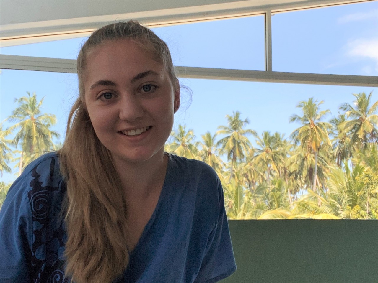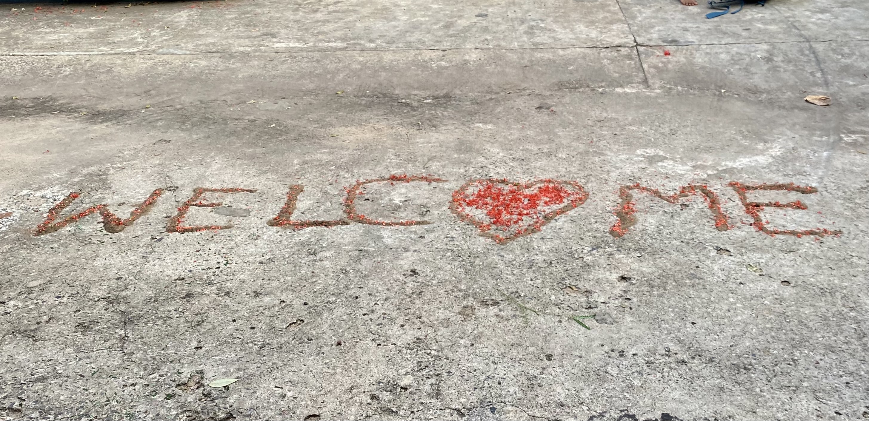 Ich wurde sehr herzlich mit einem Willkommensgruß und einem Blumenstrauß empfangen, musste allerdings gleich in mein Praktikantinnen Zimmer gehen, da ich noch eine Woche in häuslicher Quarantäne bin bevor ich meine Arbeit beginnen kann. Aber bei der schönen Aussicht von meiner Dachterrasse lässt sich das verkraften!
