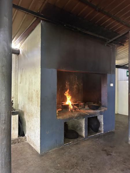 Auch die Küche ist ganz anders als bei uns. Gekocht wird draußen auf einem Herd mit offenem Feuer und die Zutaten werden nicht mit einem Messer geschnitten, sondern mit einer Klinge, die an einem Brett befestigt wird. Das sieht erstmal umständlich aus, aber die Mädchen kommen damit total gut klar. Es gibt immer eine Gruppe die den Köchinnen beim Kochen hilft, manche mögen das sehr gerne und andere weniger :)