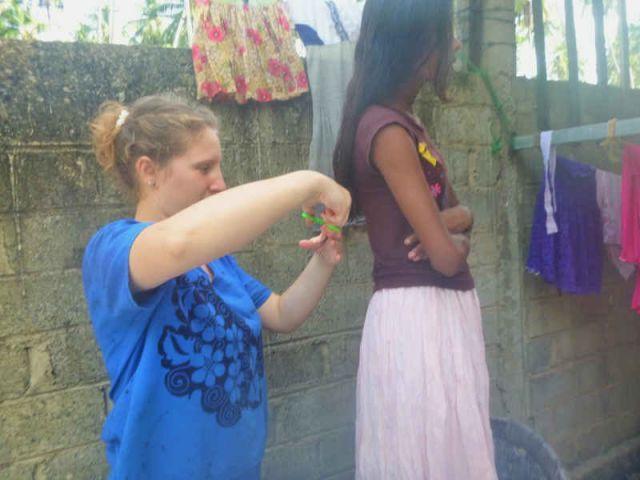 Die Haare sind bei unseren Mädchen immer ein großes Thema. Jeden Morgen werden sie zu ordentlichen Zöpfen geflochten. Man merkt schnell, wie kritisch manchmal die von mir geflochtenen Zöpfe betrachten werden. Sie müssen perfekt sein! Auch der Scheitel -oder wie Subani sagt die „road to Colombo"- muss haargenau in der Mitte sein.