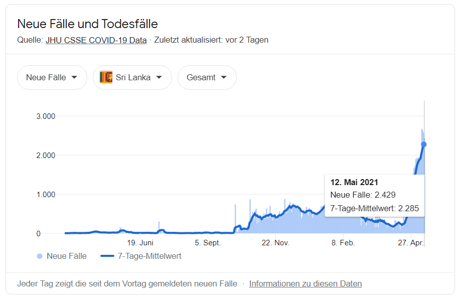 Seit 3 Wochen sind wir zurück in unserem Lockdown-Modus, denn so lange sind bereits die Schulen wieder geschlossen und wir haben kontinuierlich alle Mädchen bei uns im Angels Home. Eigentlich dachten wir vorher noch ganz optimistisch, Sri Lanka hätte Corona soweit im Griff. Die täglichen Neuinfektionen auf der Insel lagen so zwischen 200-300 und im Alltag merkte man, abgesehen von der Maskenpflicht, kaum noch etwas von dem Virus. Doch dann ganz plötzlich stiegen die Zahlen seit Ende April kontinuierlich an und mittlerweile sind wir bei ca. 2700 Neuinfektionen pro Tag angelangt - solche Werte gab es in Sri Lanka zu Beginn von Corona im letzten Jahr bei Weitem nicht. Deshalb warteten wir eigentlich schon seit 1-2 Wochen auf die Verkündung von erneuten Ausgangssperren und Restriktionen für die Bevölkerung. Nun ist es soweit: Mit dem heutigen muslimischen Feiertag zum Fastenbrechen (Eid Mubarak) wurde über das damit verlängerte Wochenende kurzerhand eine Ausgangssperre verhängt, welche vorerst bis Montagmorgen um 4 Uhr anhalten soll. Anschließend ist es auf jeden Fall bis 31.05. verboten, nachts zwischen 23 und 4 Uhr das Haus zu verlassen und man darf sich nur innerhalb der eigenen Provinz bewegen. Alles andere wird sicherlich anhand der Zahlen nach dem Wochenende entschieden und wir hoffen alle sehr, dass die Fälle wieder abnehmen!