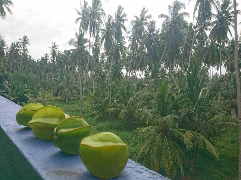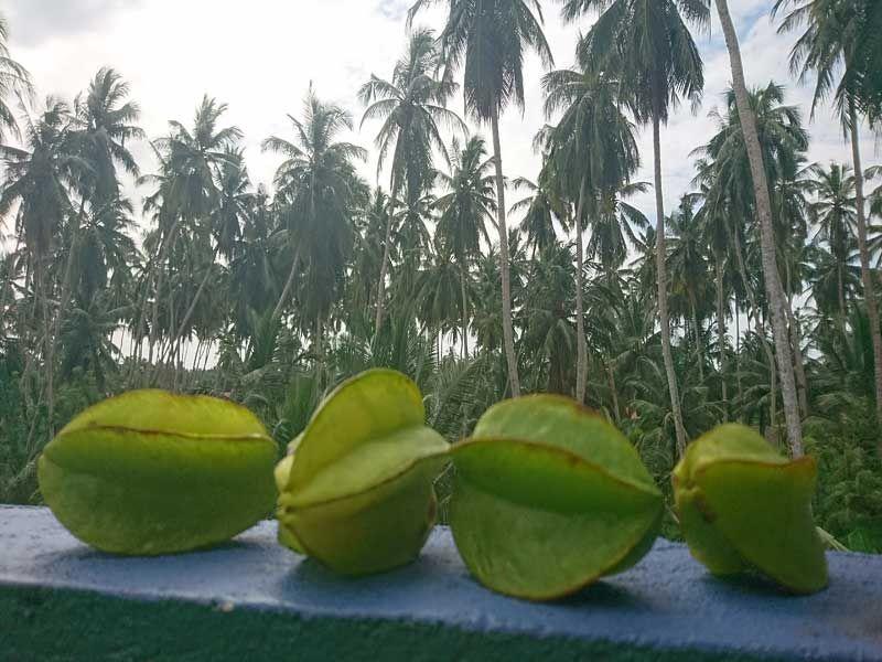 Inzwischen haben wir sechs Sternfrüchte im Kühlschrank liegen, die wir alle von unserem lieben Tuk Tuk – Fahrer Christie geschenkt bekamen. Seine Zuverlässigkeit und seine fairen Preise haben ihn zum „Stamm-Tuk Tuk – Fahrer" für alle Praktikantinnen des Angels Home „befördert". 😊 Bei meiner vorletzten Tuk Tuk – Fahrt überraschte er mich dann mit einer Tüte voller Sternfrüchte! Als er uns gestern an unserem freien Tag (genau eine Woche später) wieder abholte, waren die Sternfrüchte inzwischen alle verspeist. Auf dem Weg zu unserem Ziel bekam er dann einen Anruf, woraufhin er kurzerhand nach Hause fuhr, 2 Minuten im Haus verschwand und wir im Tuk Tuk auf ihn warteten. Kurz bevor er wieder einsteigen wollte, drehte er nochmals um und verschwand im Garten. Als er dann wieder mit fünf Sternfrüchten herauskam, wussten wir auch, woher er die Sternfrüchte immer bekommt. 😊 Frischer geht es nicht! 😊 Da auf dem Weg zu unserem Ziel ein Hotel auf der Strecke lag, dessen Besitzer er gut kannte, schlug er uns vor, eine der Früchte direkt vor Ort aufzuschneiden und sie uns auf singhalesische Art mit Pfeffer und Salz zu servieren. 😊 Frisch gestärkt kamen wir nach unserem dritten Anlauf dann an unserem ursprünglichen Ziel, dem Palm Bay Resort an. 😊