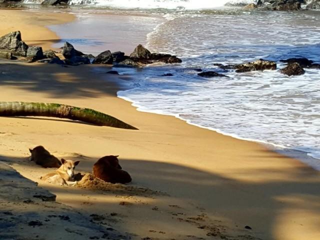 Die Strolchs überwiegen hier eindeutig die Susis. Auf Sri Lanka sind ungefähr 40 Millionen, nein das ist kein Schreibfehler, Straßenhunde unterwegs. (quelle) Die Touristen berichten darüber und jetzt erlebe ich es selber. Egal wo man hinsieht oder hingeht, die streunenden Begleiter tauchen überall auf.
