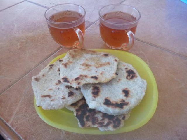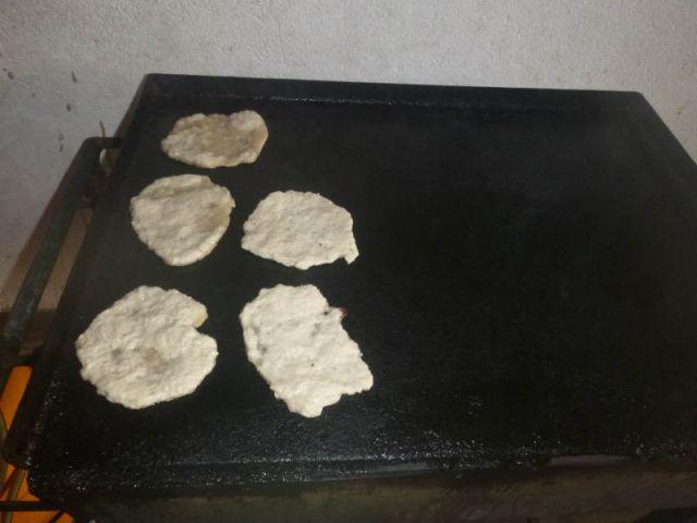 Aus den Zutaten wird dann ein Teig geknetet, der von der Konsistenz einem Brotteig ähnlich ist. Mit ein bisschen Öl an den Händen werden dann kleine Pfannkuchen geformt und in einer flachen Pfanne mit etwas Öl goldgelb angebraten.