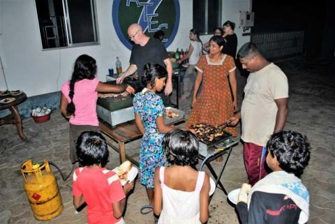 Gestern wurde in Sri Lanka allerorts in das neue Jahr gefeiert, welches hier sowohl im Buddhismus, als auch im Hinduismus jährlich am 13. und 14. April zelebriert wird. Da wir aufgrund der Ferien momentan nur 27 Mädchen bei uns im Angels Home haben, nutzten wir den gestrigen "Silvesterabend" für ein BBQ im Hof des Traingscenter. Es gab lecker Hühnchen vom Grill, Dhal-Curry, Tzatziki, Salat, Zwiebelmus, Rührei und Brot, wofür sich Frank und Nachwuchs-Köchin Nadisha mächtig ins Zeug gelegt haben. Dazu gab es die passende Tanz-Musik und so konnte die Party steigen und das neue Jahr beginnen.