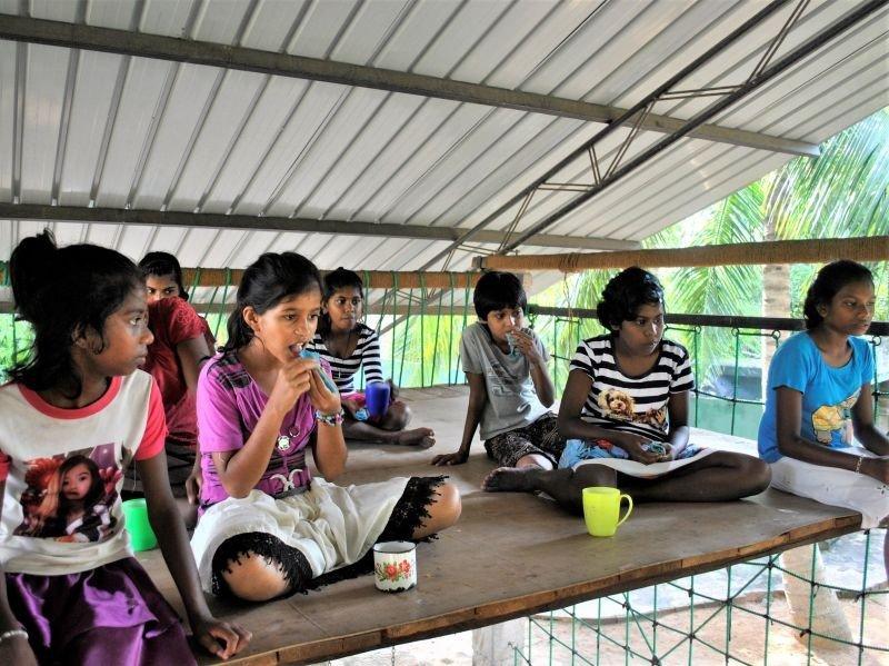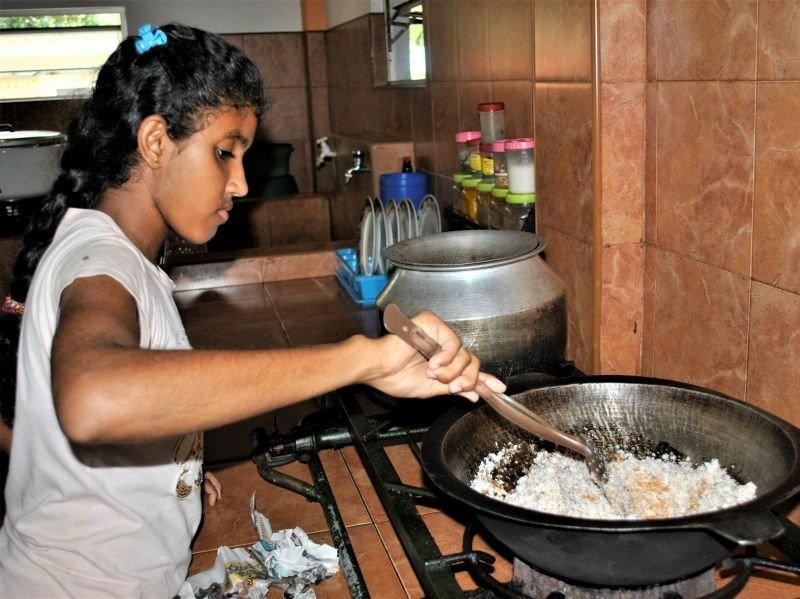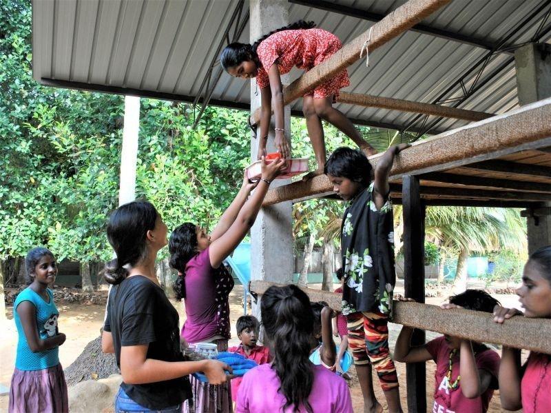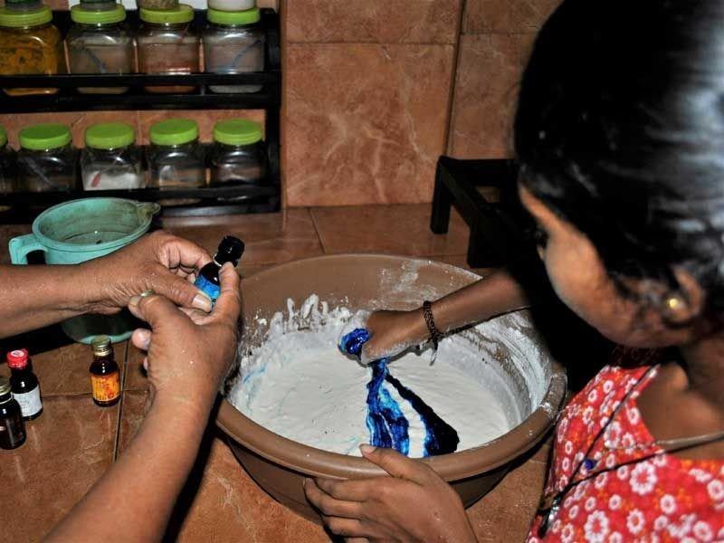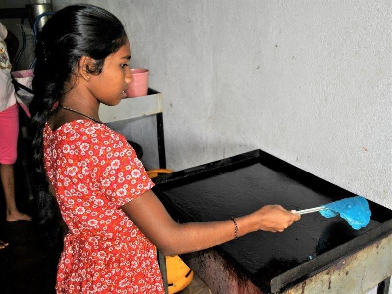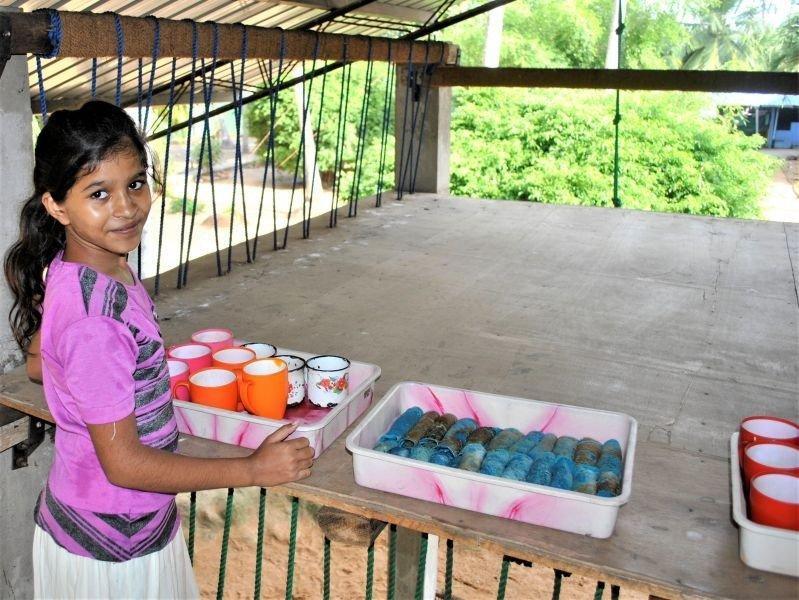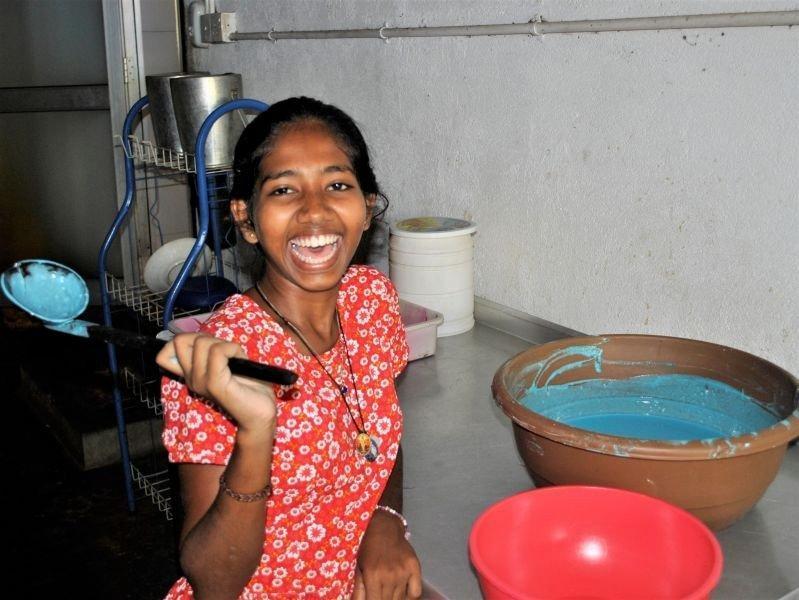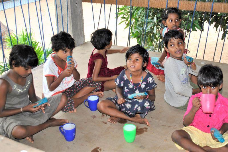 Während der Ferien hatten wir eine Teeparty auf dem Spielplatz mit gebackenen Pfannkuchen als Teatime-Snack. Die Pfannkuchen waren jedoch keine gewöhnlichen... sie hatten eine blaue Farbe. Die großen Mädchen halfen uns beim Backen der Pfannkuchen, während die anderen Mädchen Tee einschenkten. Sie kennen nun das Rezept und wissen, wie man es ein wenig interessanter machen kann. Zum Glück haben wir es geschafft, alles pünktlich fertig zu bekommen und die Mädchen haben geholfen, die Teetassen und Pfannkuchen auf den Spielplatz zu bringen. Dieser war vorher größtenteils leer, doch nun waren alle Ferienkinder oben auf den Podesten… sogar Julia war dabei! Die Mädchen waren sehr zufrieden mit den Pfannkuchen und die kleine Party lief besser als erwartet.